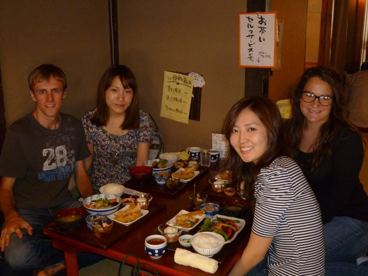 Breakfast was also quiet special. The room was similar to the hotel room with the bamboo mats and the low tables with pads to sit on. Our food was already on the table with a paper sheet cover to keep it fresh. We were served baked salmon, rice, pickled cucumbers and other vegetables, some sort of tofu and egg cake, and we each had our own pot of miso soup. The waitress lit a burner underneath the pot to heat up our soup, similar to fondu. I have found that a traditional, as well as still common, breakfast here in Japan consists of baked fish (usually salmon), rice and salad.